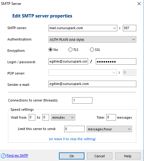 5.SMTP serverın ayarları aşağıda gördüğünüz şekilde olmalıdır.Ayarlarınızı bu şekilde gerçekleştirdikten sonra ok tuşuna basınız.
